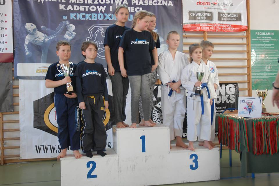 80 zawodników z 10 klubów wzięło udział w Mistrzostwach Warszawy kadetów (10-15lat) w Pointfightingu, które odbyły się 10 Listopada br. w hali Reduta na warszawskiej Woli. 5 osobowa reprezentacja naszego klubu zdobyła 8 medali. Bardzo dobrze spisali się nasi kadeci starsi: Jan Bocheński i Cezary Aderek, którzy wygrali swoje kategorie wagowe. Do grona zwycięzców dołączył również Gustaw Wielądek, który wygrał kategorię +47kg wśród Kadetów młodszych. W tej samej kategorii wiekowej brązowe medale wywalczyli Bartosz Dobrowolski (-37kg) i Adam Bachman (-37kg i -42kg) a drużyna w składzie (Gustaw Wielądek, Bartosz Dobrowolski, Adam Bachman i Hania Kasprowicz) stanęła na najwyższym stopniu podium. Gratulujemy :)