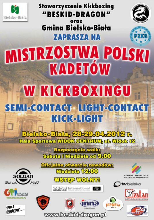Dodano czwartek, 26 kwietnia 2012W dniach 28-29 kwietnia odbyły się Mistrzostwa Polski w Kickboxingu w formułach semi-contact, light-contact oraz kick light.