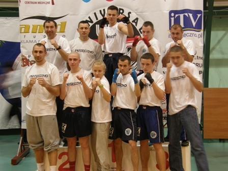 Dodano poniedziałek, 12 grudnia 201110.12.2011 odbył się kolejny ogólnopolski turniej Mazovia open. Nasi zawodnicy rywalizowali w formułach UFR , Pointfightingu i Light Kicku. Cieszy dobra postawa debiutantów wśród których najlepiej zaprezentowali się Adam Rajczak i Jarosłąw Malinowski wygrywając swoje kategorie wagowe wśród juniorów w formule UFR. Klasą samą dla siebie był Michał Jabłoński, który nie dał żadnych szans swoim przeciwnikom w kat. -90kg. Wśród kobiet najbardziej wszechstronne wyszkolenie pokazała Agnieszka Chmielewska zajmując miejsca na podium we wszystkich formułach.