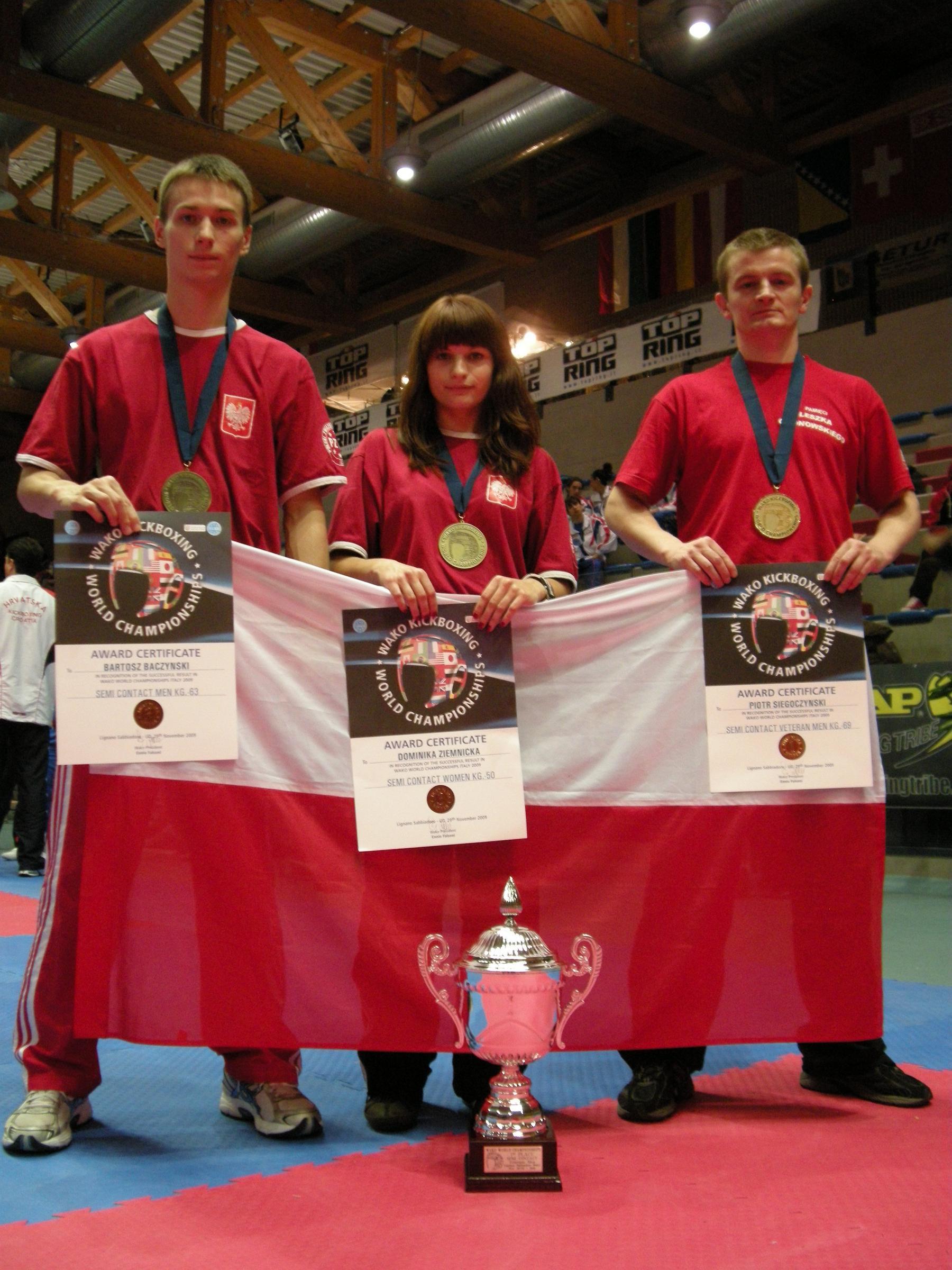 O tym że POLSKA posiada bardzo dobrych zawodników, zawodniczki oraz sędziów w kickboxingu świadczy fakt iż po Mistrzostwach Świata które odbyły się w Villach – Austria oraz Lignano Sabbiadoro – Włochy ,Światowa federacja zakwalifikowała dwie zawodniczki: Alicja Piecyk ( low-kick -56 kg), Kinga Siwa ( low-kick -60 kg), trzech zawodników: Bartosz Baczyński ( semi contact -63 kg), Mariusz Niziołek (full contact -81 kg), Tomasz Mordarski (low-kick -71 kg) oraz trzech sędziów: Krzysztof Kacperski, Ryszard Zawistowski, Józef Mazurek. Awans 2 zawodników z naszego klubu to olbrzymi sukces szkoleniowy i sportowy trenerów: Piotra Siegoczyńskiego i Marcina Pałuby.